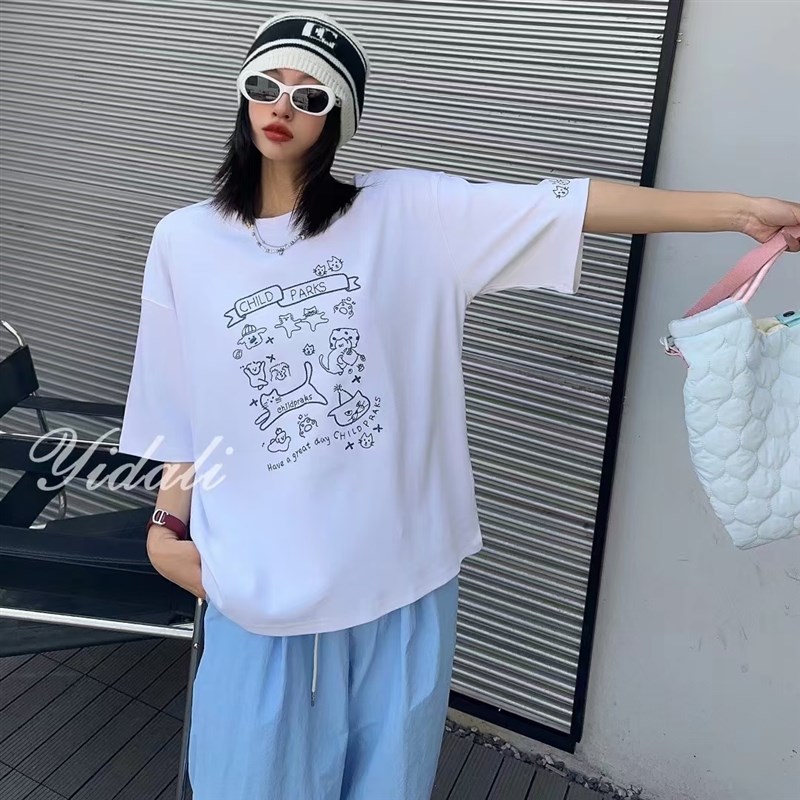 韩版卡通短袖T恤女2022年夏季新款时尚潮牌半截袖宽松上衣女ins潮