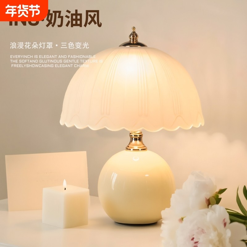 奶油创意台灯卧室床头灯轻奢温馨浪漫长明结婚浪漫礼物小夜灯客厅