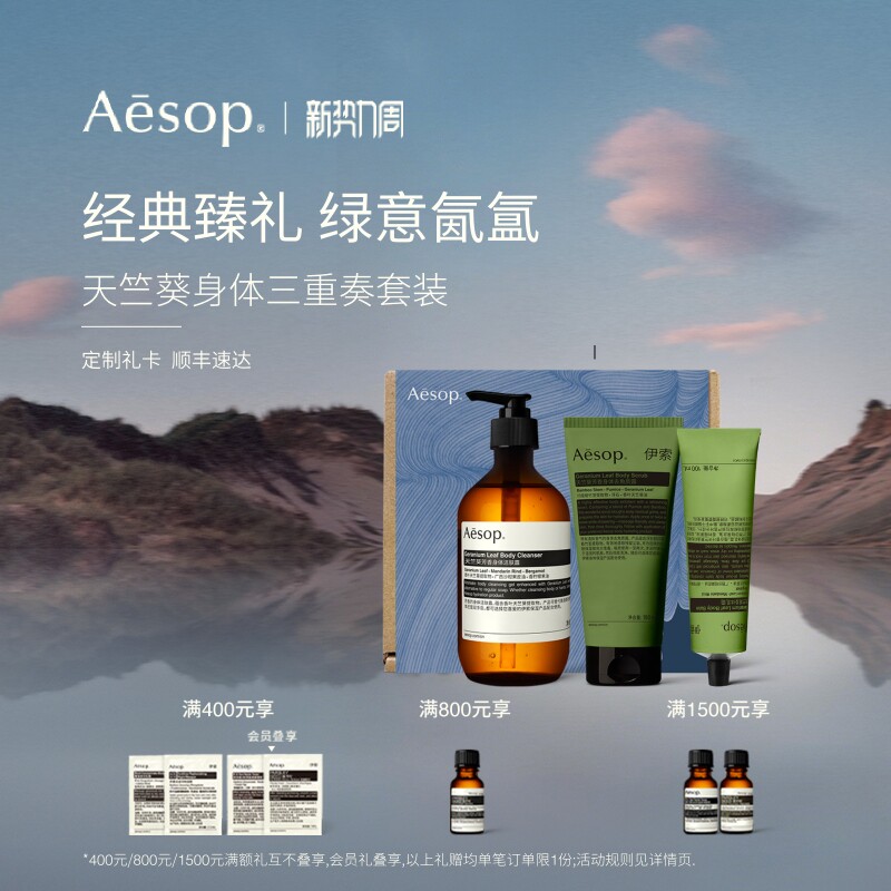 [年度礼盒]Aesop伊索 天竺葵三重奏洁肤露身体乳去角质露生日礼物