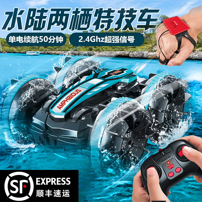 手势感应水陆两栖车遥控四驱车越野特技翻滚车灯光夜光船儿童玩具