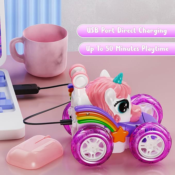 广宇诚遥控翻斗车小萌马遥控特技翻滚车儿童玩具灯光音乐礼盒包装