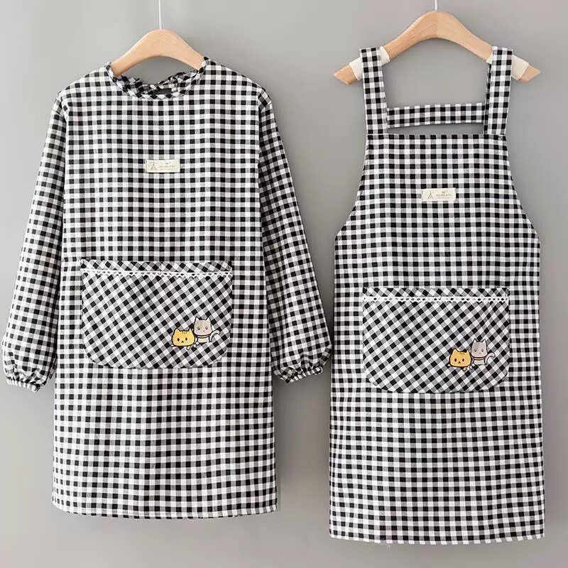 日系家用厨房做饭围裙长袖女可爱时尚防水上班餐饮工作服罩衣围腰