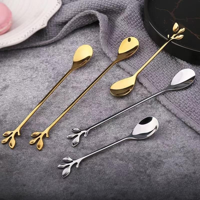 树可咖啡勺搅拌棒勺可立长柄勺子迷你精致蜂蜜果酱甜品不锈钢小勺