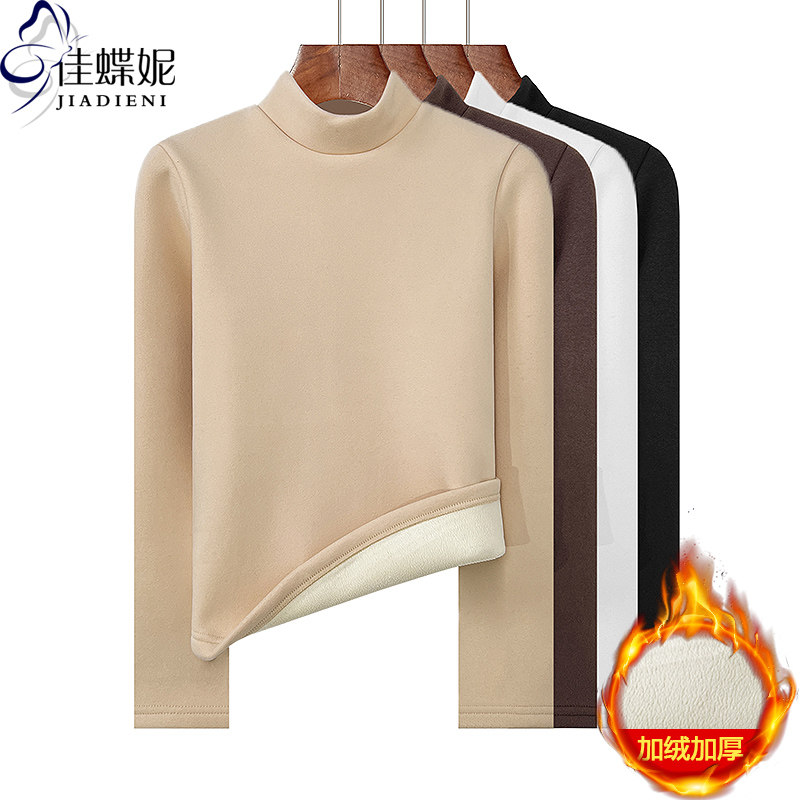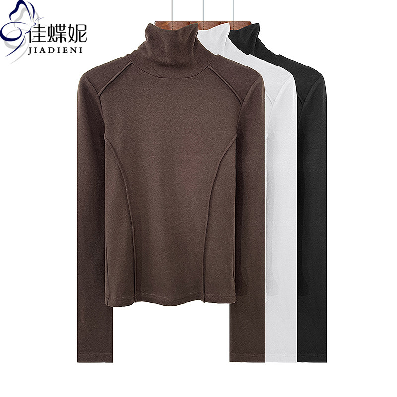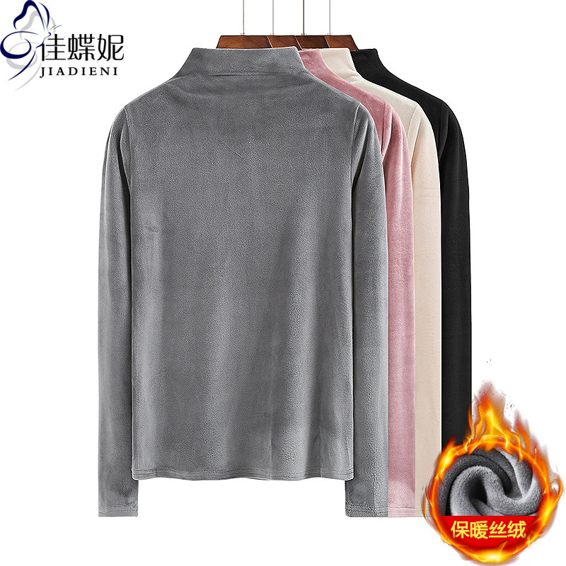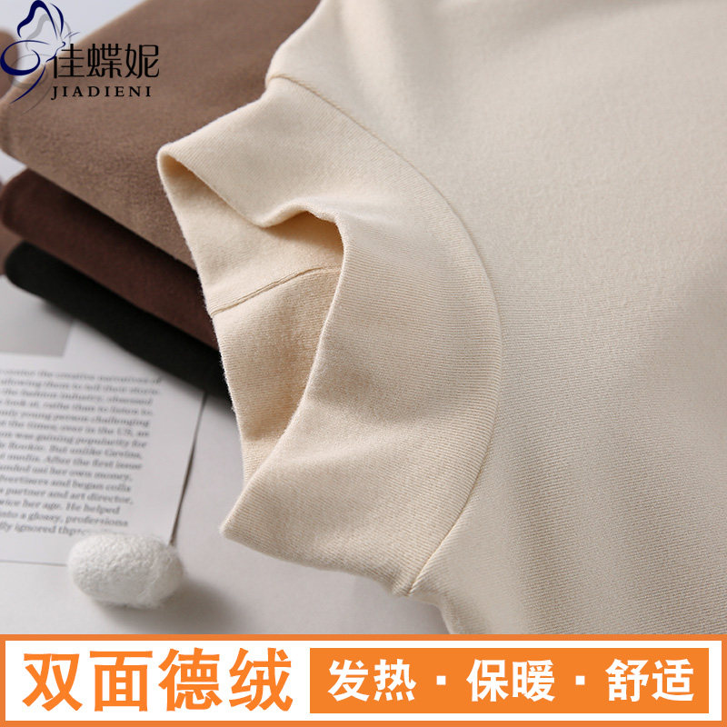 佳蝶妮冬季半高领修身纯色德绒加绒加厚保暖长袖体恤上衣女打底衫