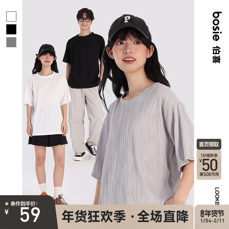 bosie伯喜2025年夏季新款短袖T恤男情侣款垂感纯色凉快体恤上衣女