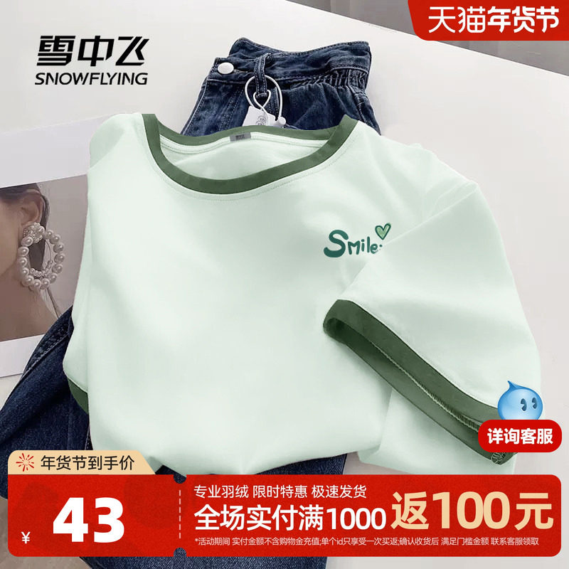 雪中飞短袖女t恤夏季2026新款宽松撞色体恤上衣女士纯棉半袖夏PC