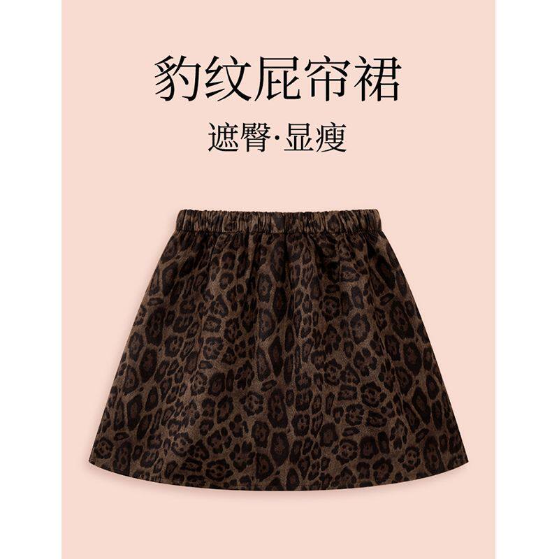 2025新款秋冬豹纹屁帘女高级感打底裤叠穿大码a字高腰半身裙短裙