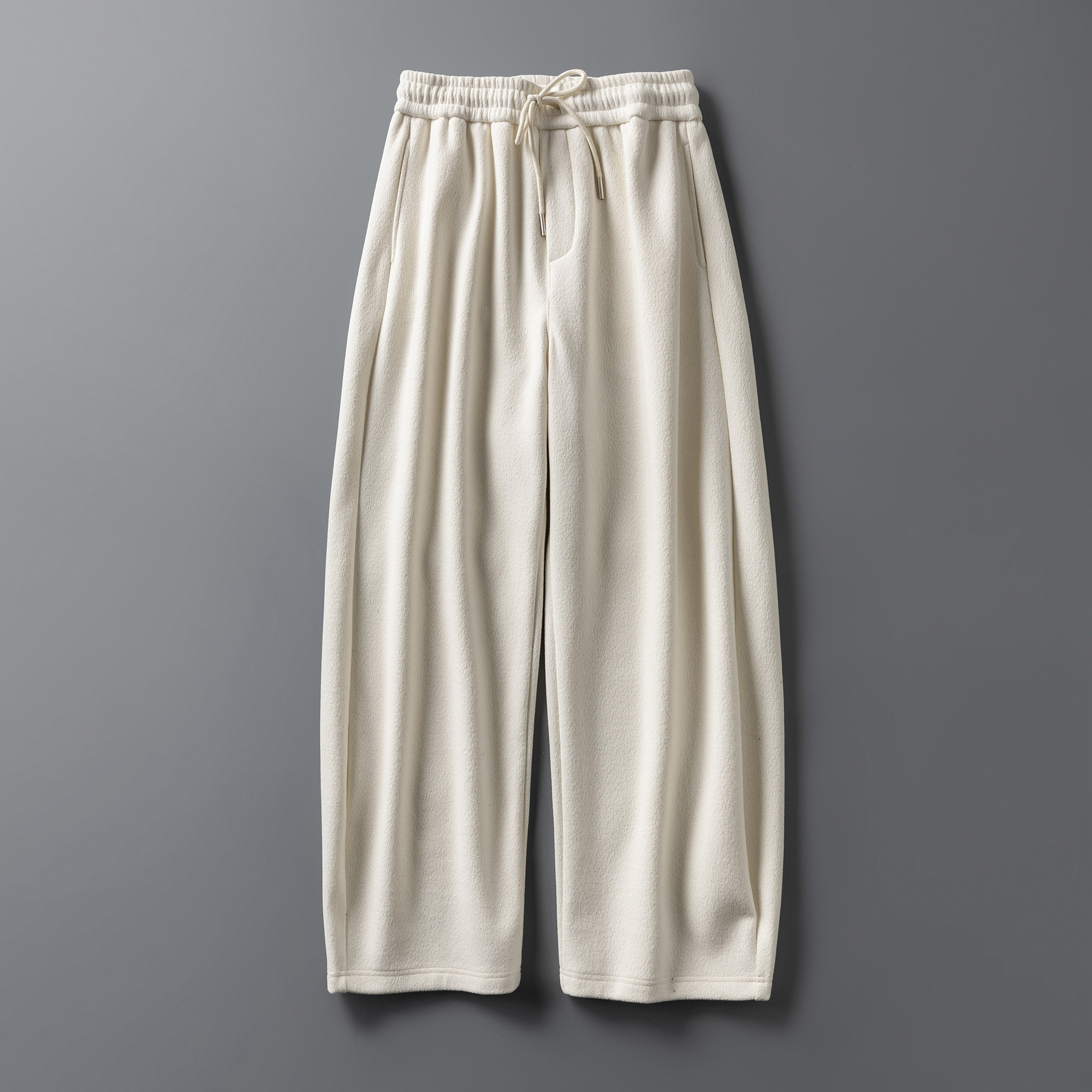 冬季重磅肌理感加绒加厚阔腿裤男cleanfit抽绳松紧腰宽松直筒长裤