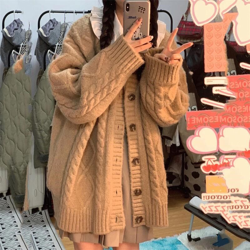 秋冬慵懒风宽松麻花毛衣女开衫学生针织衫外套百搭显瘦上衣韩版潮