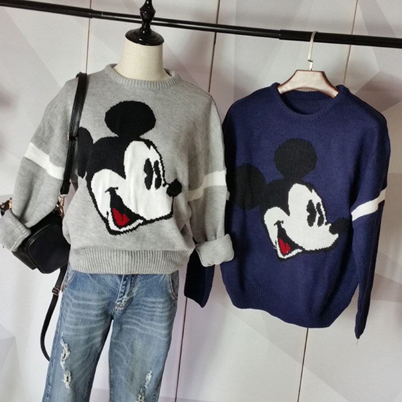 秋冬季学生韩版宽松米奇卡通厚套头女装新款毛衣长袖百搭款少女范