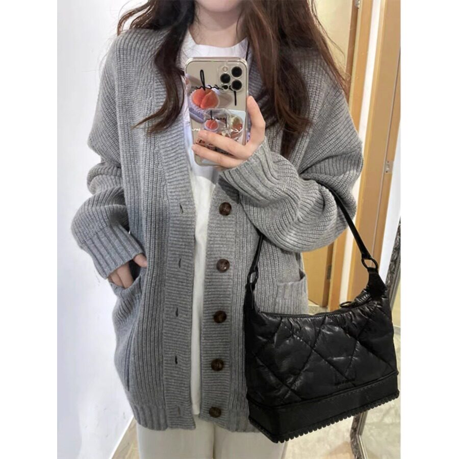 秋冬灰色慵懒风开衫毛衣女学生韩版宽松百搭显瘦针织衫上衣外穿潮