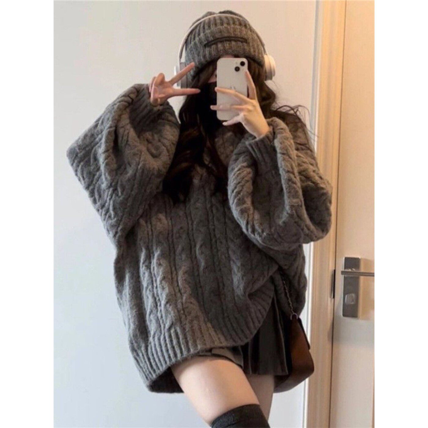 女学生秋冬韩版慵懒风外穿加厚V领宽松灰色冬季毛衣百搭针织衫潮