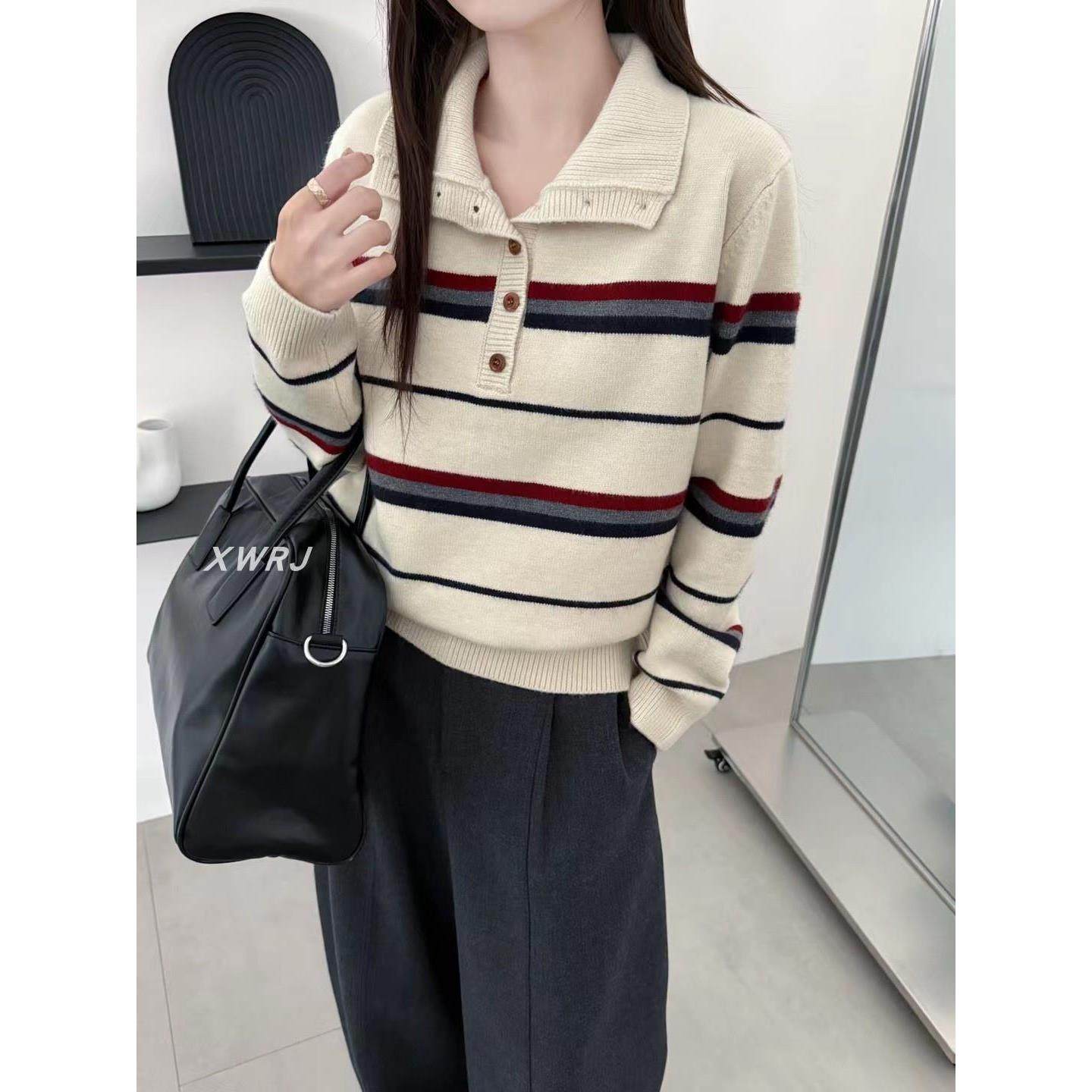 外穿毛衣女秋冬2024年新款韩版百搭上衣宽松慵懒风条纹针织衫学生