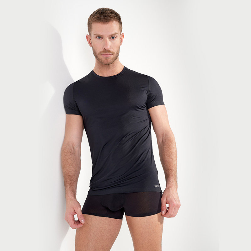 HOM法国男士25年夏季新款短袖T恤圆领纯黑色简约百搭修身透气上衣