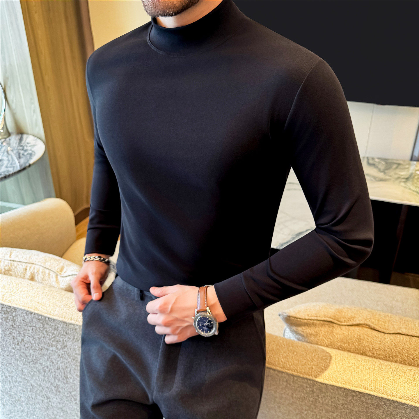 - 高领打底衫男纯棉修身