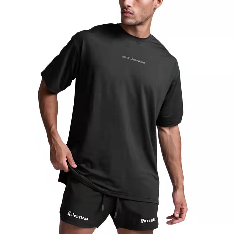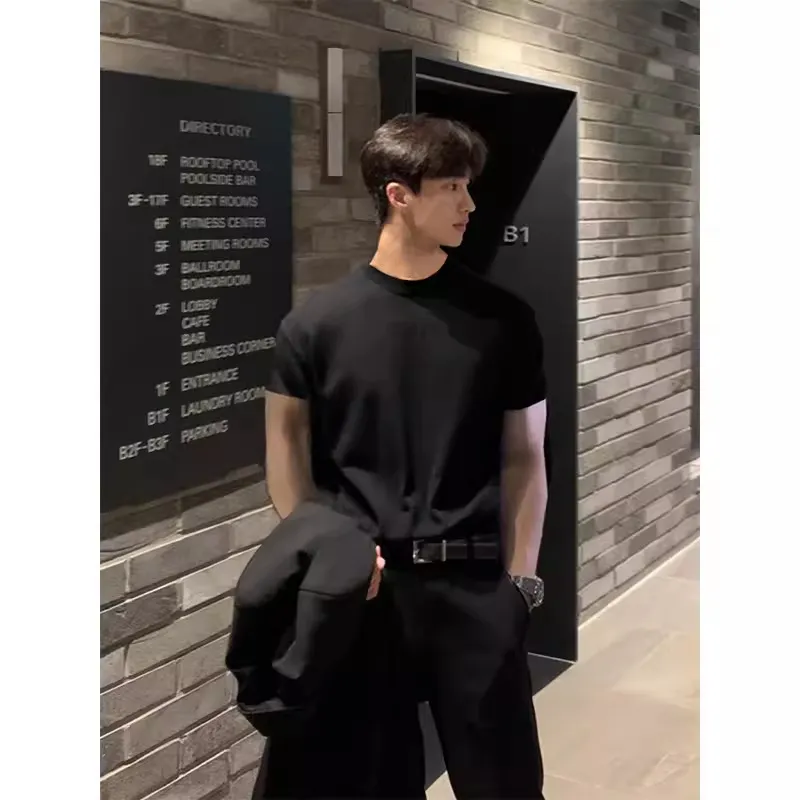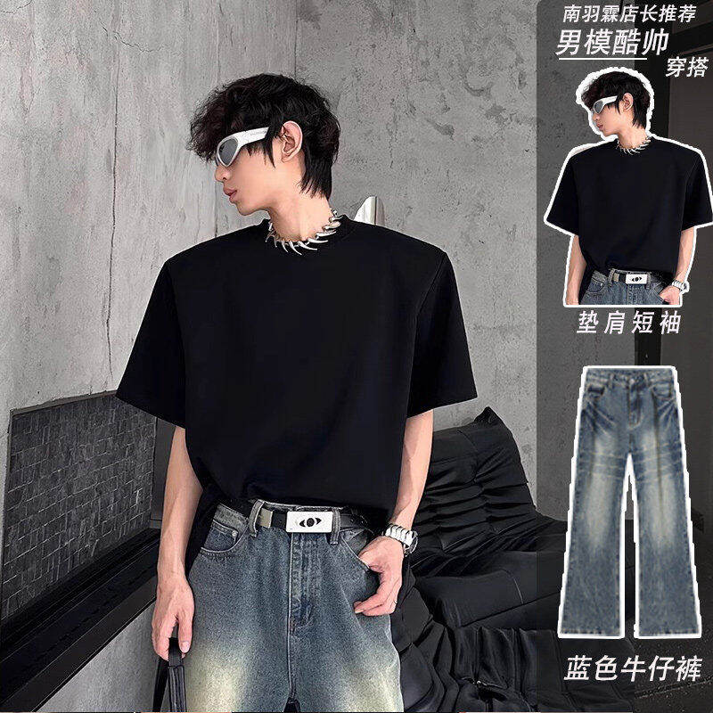 纯黑色廓形垫肩t恤美式男模穿搭套装高级感cleanfit短袖潮牌半袖