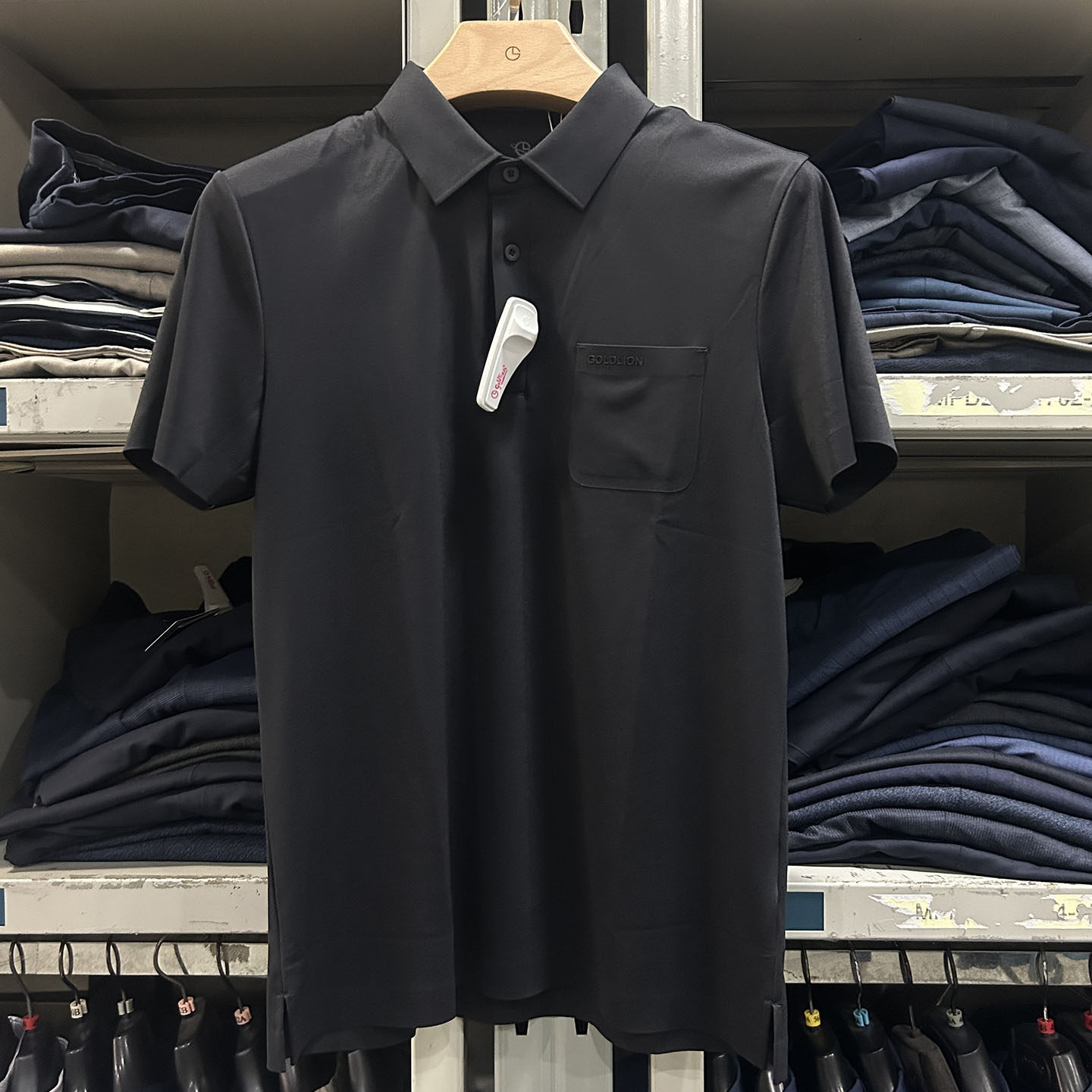 金利来男装T恤衫夏款翻领修身纯黑色短袖MTS22111461-99
