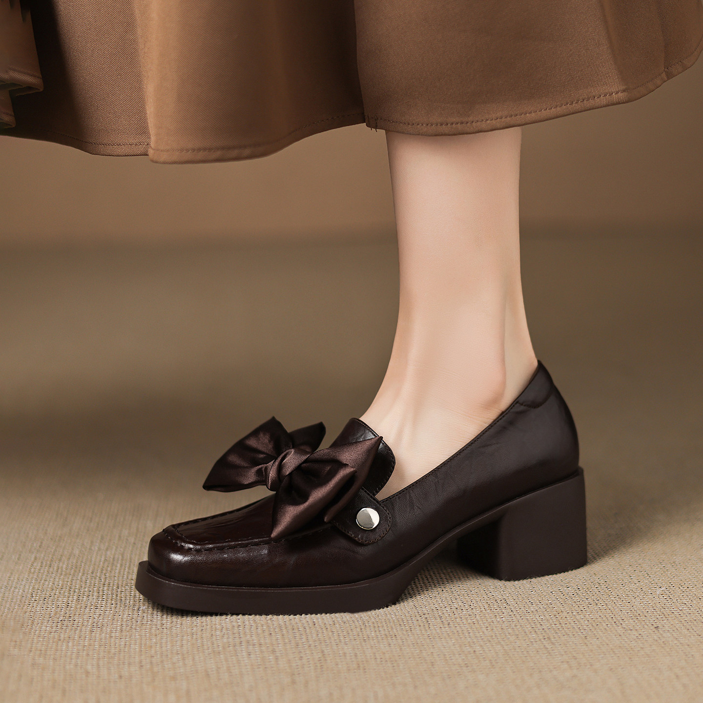 - 方头粗跟中跟单鞋