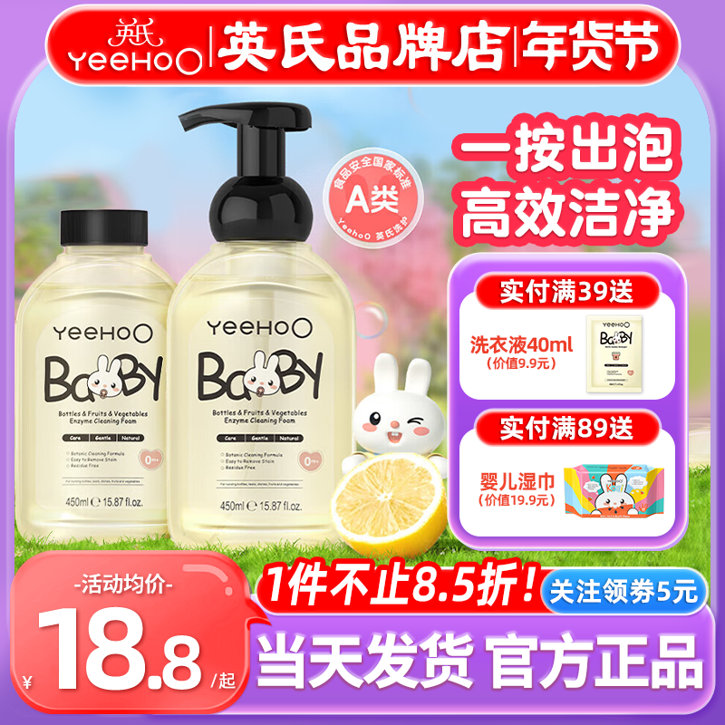 英氏奶瓶清洗剂婴儿专用奶瓶清洗液果蔬玩具洗洁精宝宝奶瓶清洁剂