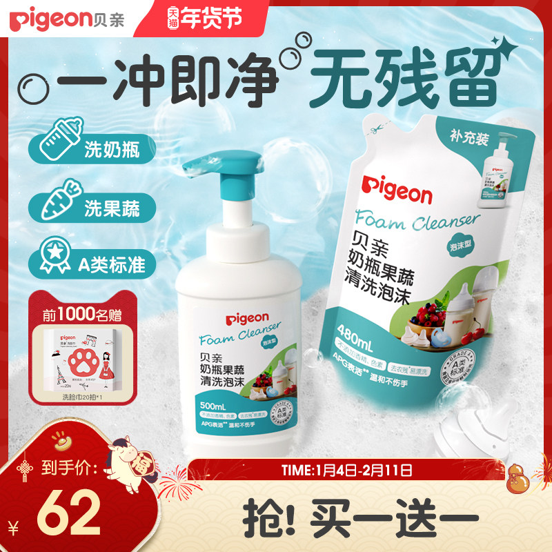 贝亲奶瓶果蔬清洗泡沫宝宝专用奶洗奶瓶清洗剂餐具清洁官方旗舰店