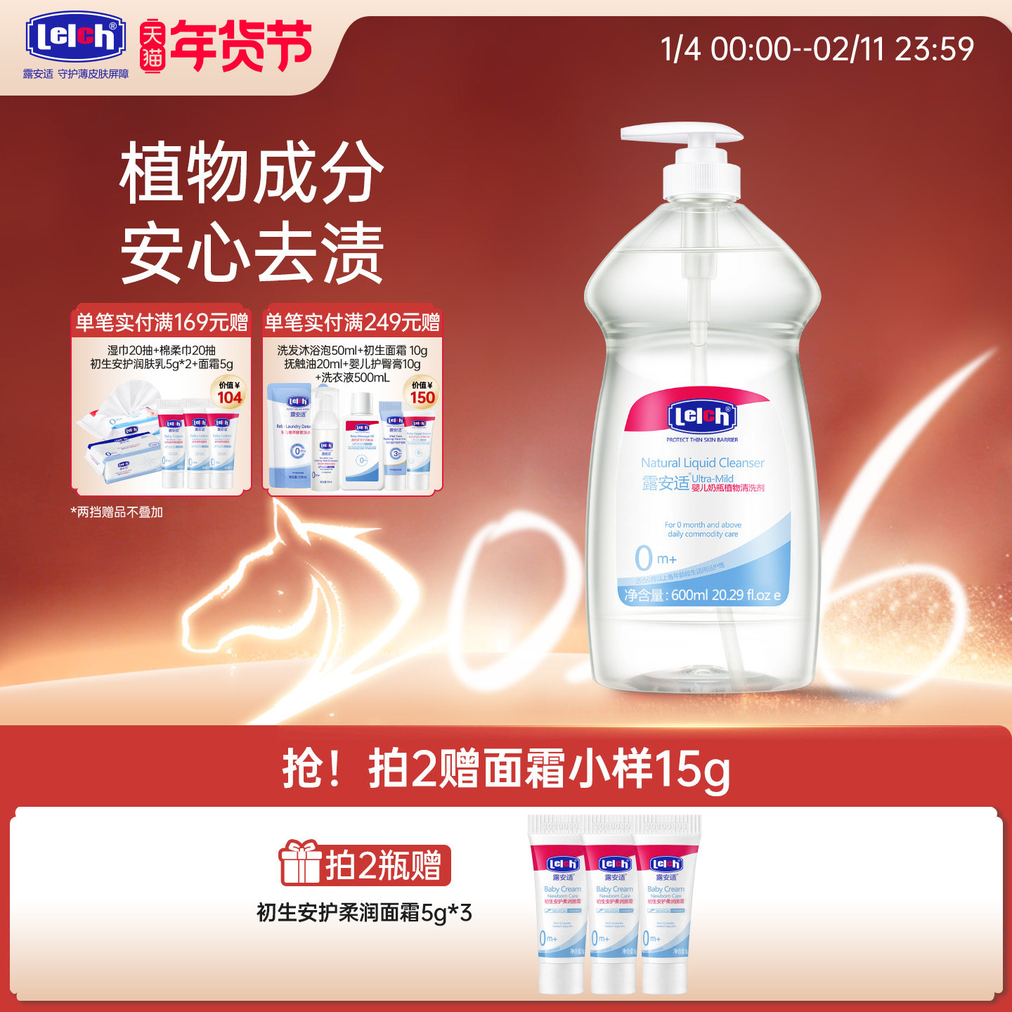 露安适Lelch奶瓶清洗剂婴儿专用宝宝清香植物餐具果蔬清洗液600m