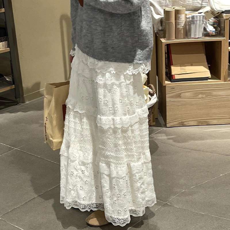 一只西由XIYO白色重工蕾丝蛋糕冬季新款中长款半身裙高腰显瘦裙子