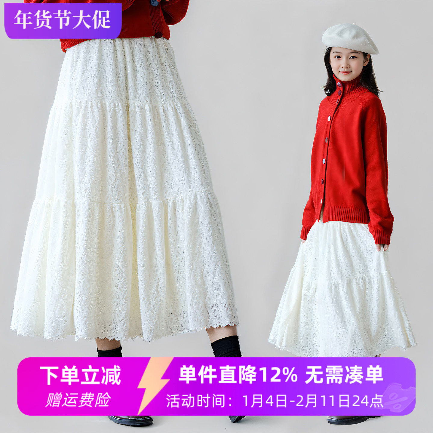 女童花边半身裙2025秋冬新款中大童中长款蕾丝裙女儿童裙子超好看