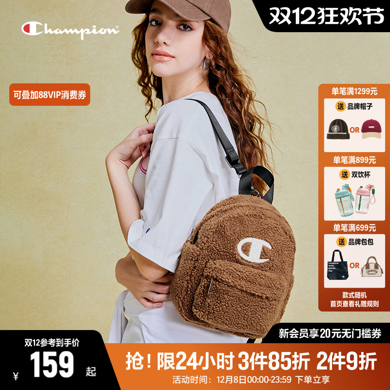 Champion冠军25年秋冬新款羊羔毛双肩包女情侣书包羊羔绒包帆布包