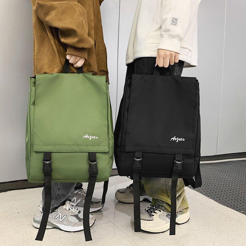 ins大学生防水翻盖工装双肩包女情侣书包男休闲纯色背包旅行包潮