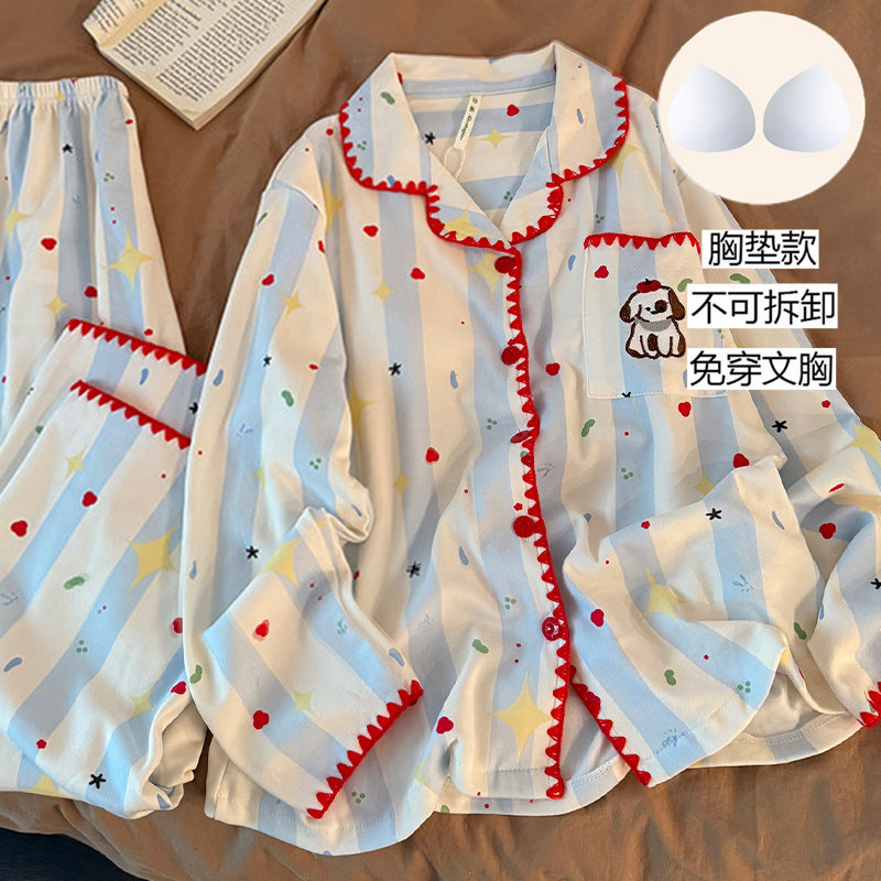 晚眠带胸垫睡衣女款春秋长袖套头卡通2026年新款秋冬季家居服套装