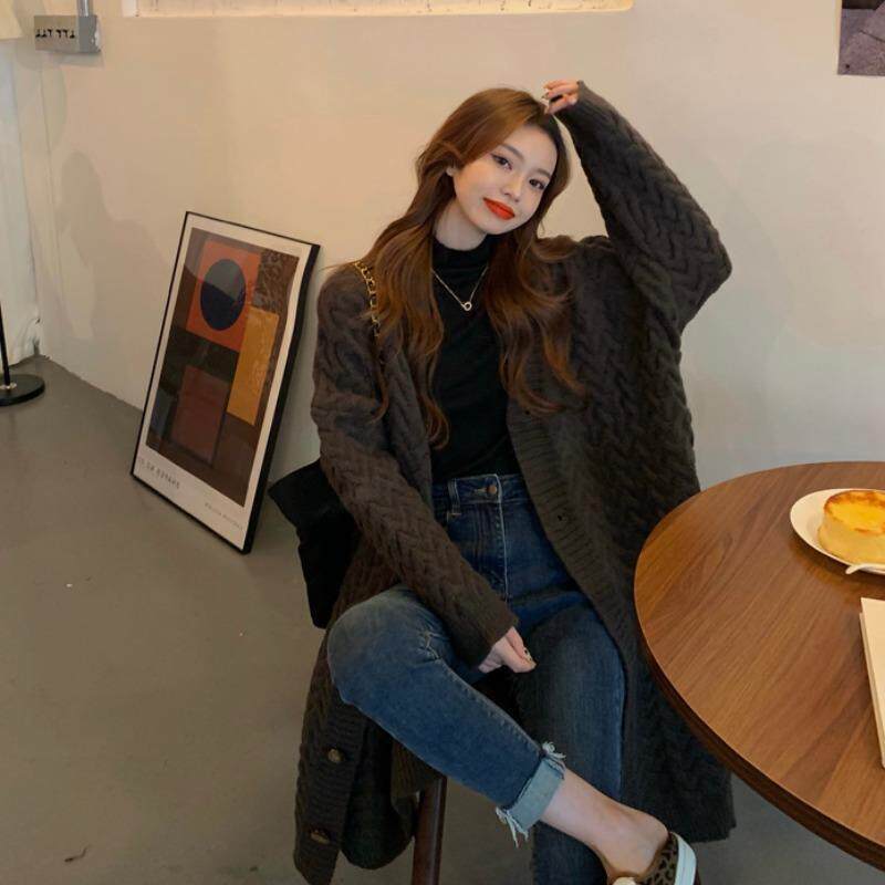 开衫毛衣女加厚中长款宽松外穿秋冬新款韩版慵懒风外套复古上衣服