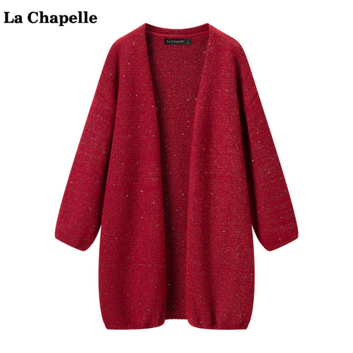 拉夏贝尔/La Chapelle韩版慵懒风针织开衫女秋中长款宽松毛衣外套