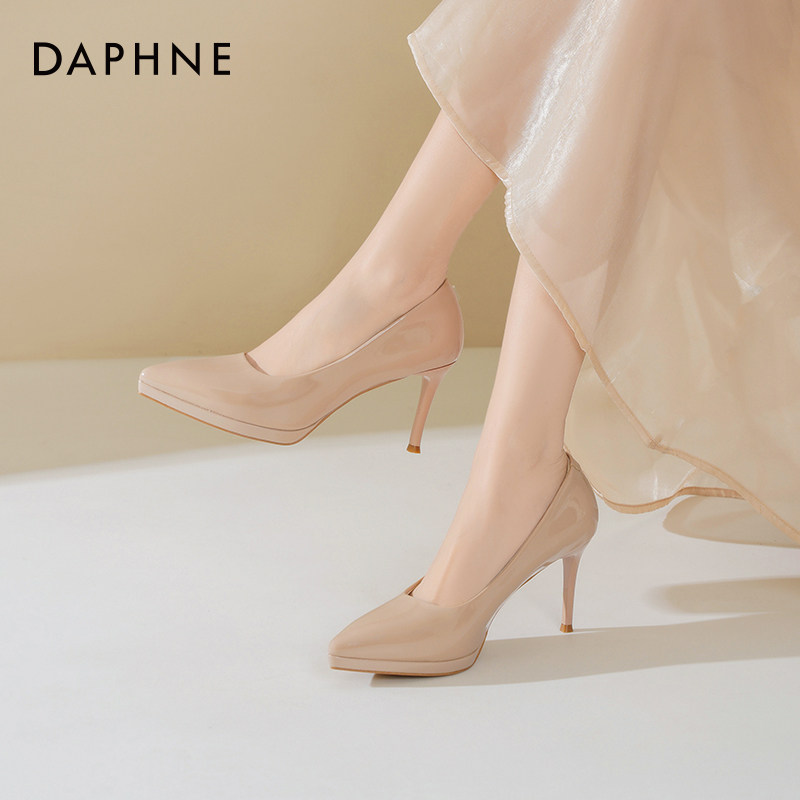 达芙妮裸色防水台高跟鞋女2026新款春季不累脚通勤细跟尖头单鞋子
