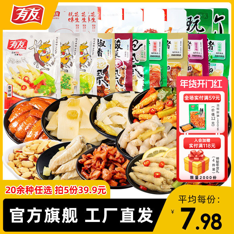 【59元任选4件】有友泡椒凤爪猪皮晶竹笋花生豆干虎皮凤爪大杂烩