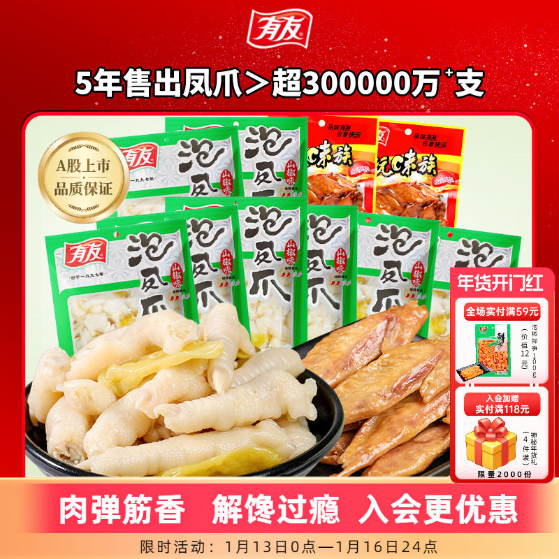 【尝鲜】有友泡椒凤爪混合口味500g迷你小包装追剧夜宵零食大礼包