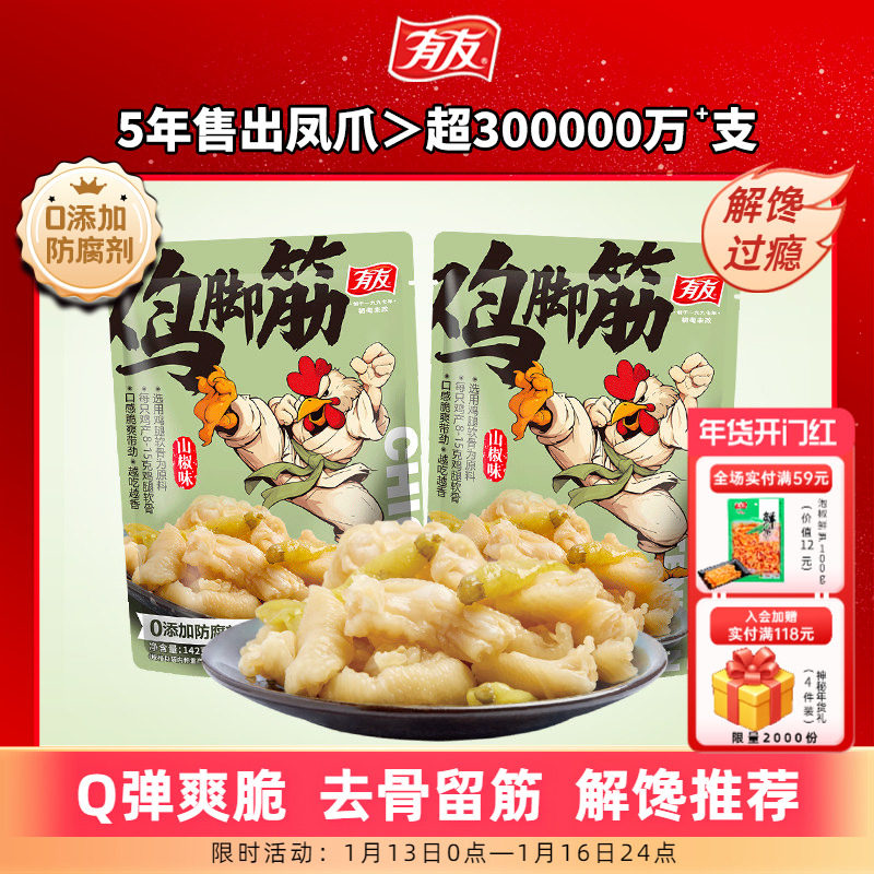 有友 山椒鸡脚筋泡椒无骨鸡爪筋脆骨网红爆款解馋追剧零食旗舰店