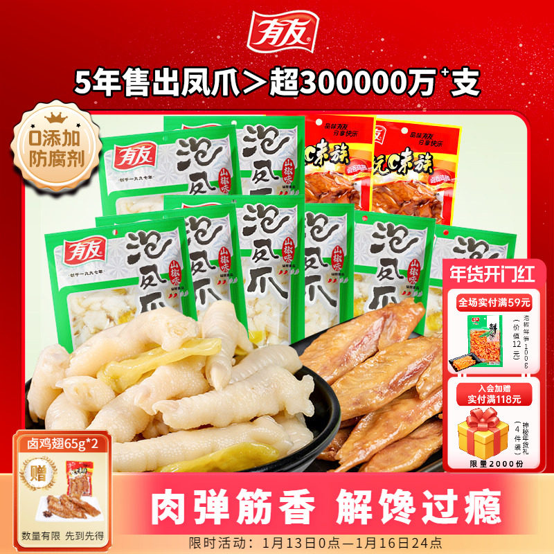 【年终囤货】有友泡椒凤爪鸡爪山椒卤鸡翅解馋追剧夜宵即食小零食