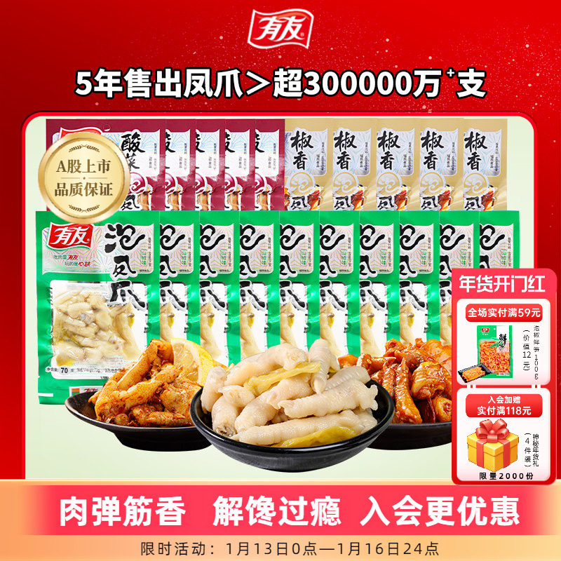 有友泡椒凤爪1500g山椒鸡爪柠檬藤椒香鸡脚年货零食独立小包装
