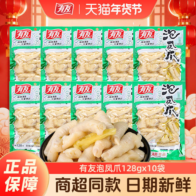 有友泡椒凤爪10袋共1280g山椒味泡椒鸡爪卤味零食小吃休闲食品