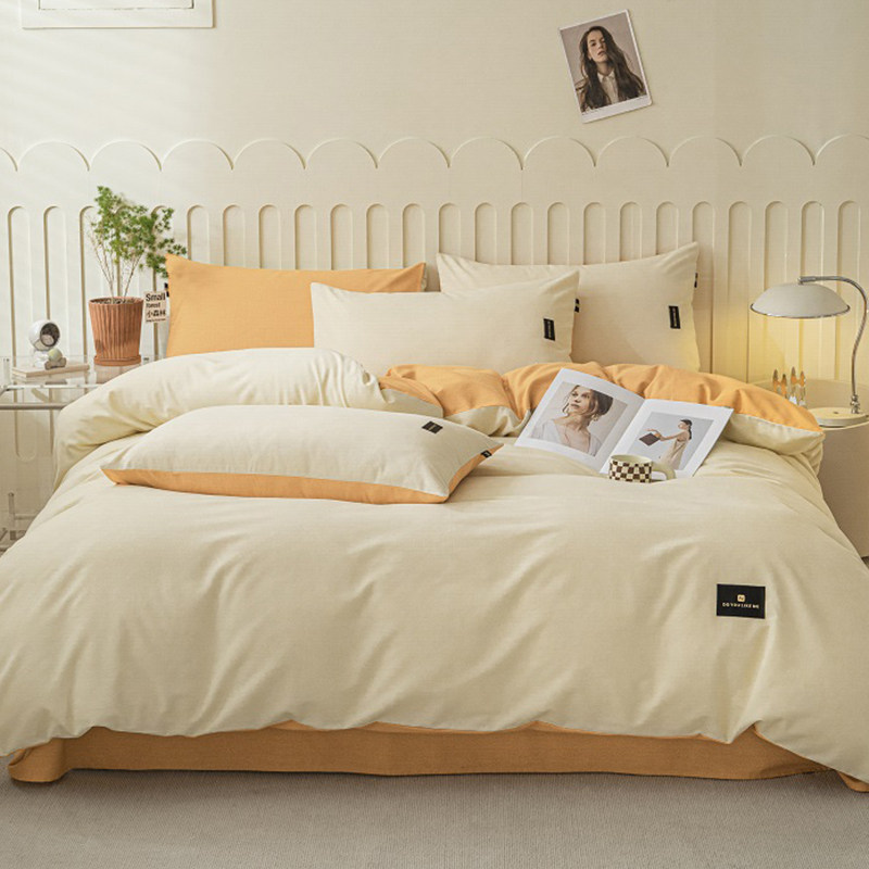 A类冬季纯色牛奶绒四件套加厚加绒被套床床笠被罩学生宿舍三件套