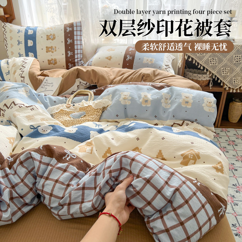日本进口A类母婴级双层纱非纯棉全棉被套被罩学生宿舍四件套柔软