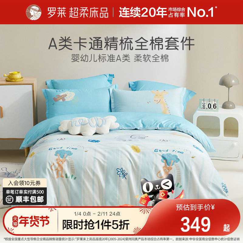 罗莱儿童床上用品A类全棉纯棉三件套床单床笠被套学生宿舍四件套