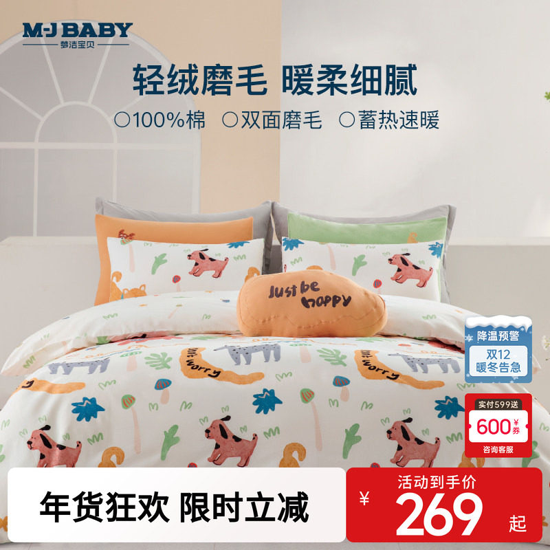 梦洁宝贝秋冬纯棉加厚磨毛三件套被套被罩床单学生宿舍四件套男孩