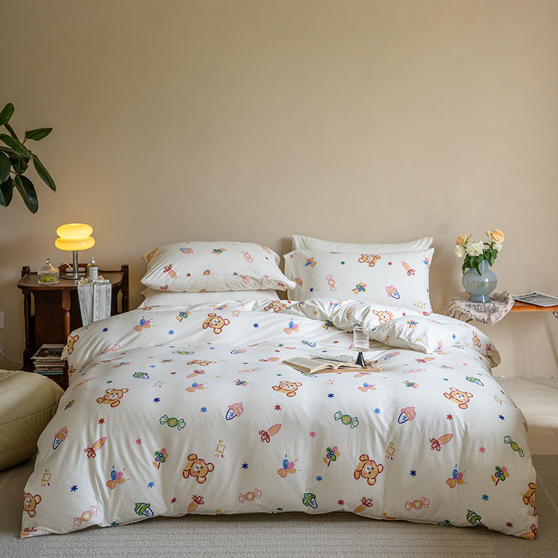 A类床上四件套水洗棉被罩母婴级床单被套床品学生宿舍三件套床笠3