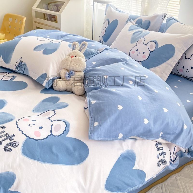 全棉针织棉可爱卡通学生宿舍四件套天竺棉纯棉被套床笠式床上用品