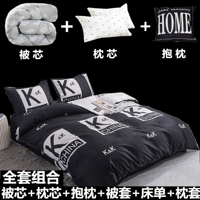 男生宿舍四件套ins风黑色被罩床上用品学生N单人被套床单三件套34