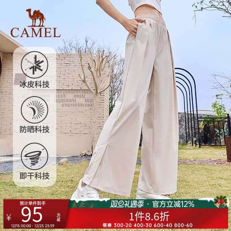 骆驼运动裤女裤透气春夏季宽松阔脚美式垂感冰感防晒直筒速干长裤