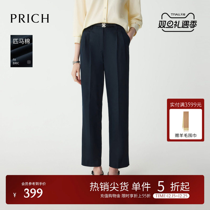 【匹马棉】PRICH气质挺阔直筒西装裤2025夏新款休闲通勤长裤子女