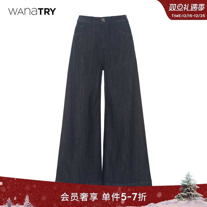 wana try复古高腰挺阔感牛仔蓝阔腿裤2025夏季新款休闲女款长裤