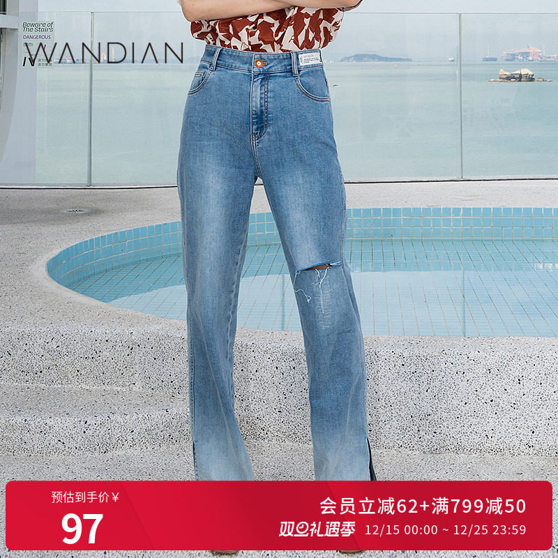 婉甸雾灰蓝牛仔直筒裤夏季新品女装百搭风阔脚裤长裤1232X01RXAYX